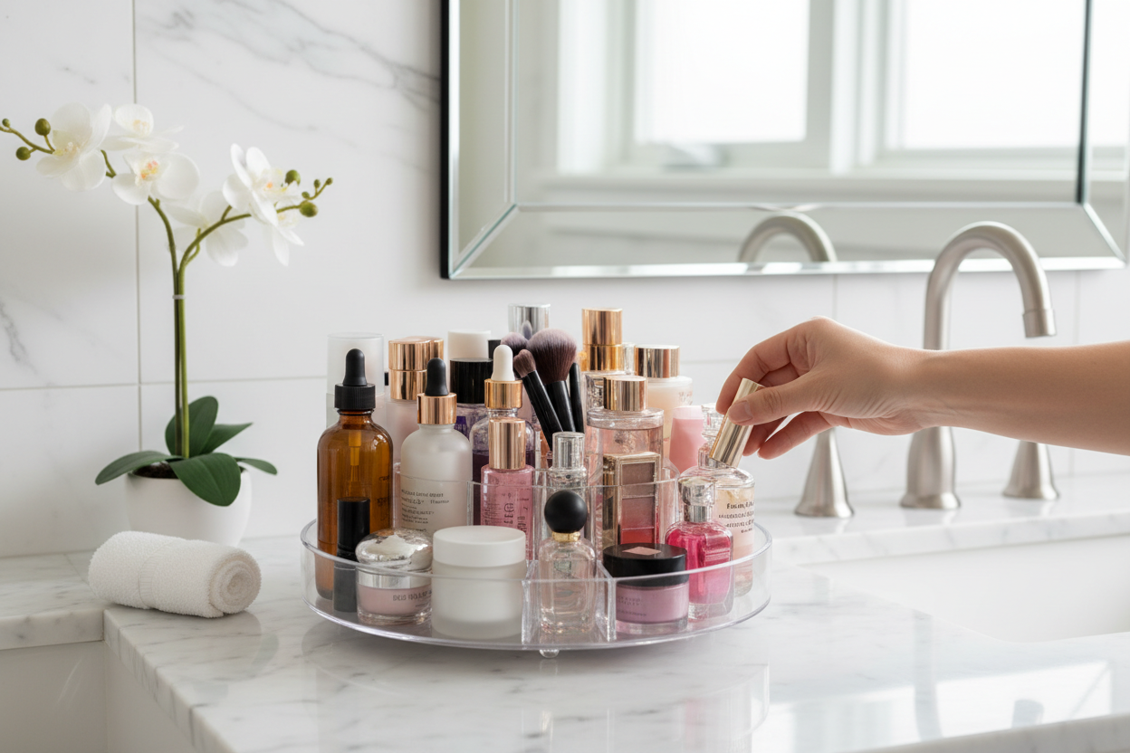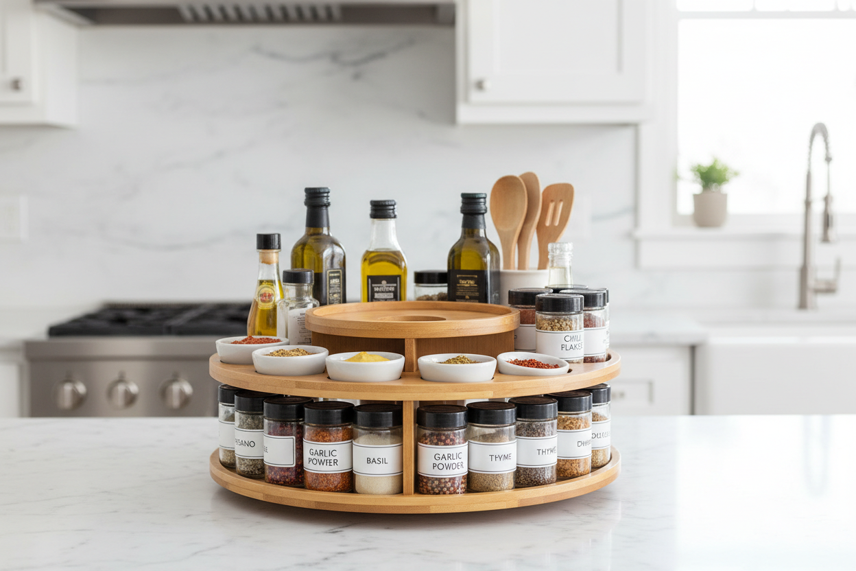 A smooth-spinning organizer that brings ease and beauty to shelves, tables, or pantries.